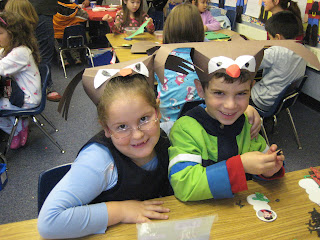 As the students finished gluing their eyes and nose on I came around and stapled.