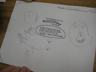 We started studying vertebrates and invertebrates this week. We made circle maps with scientific observation drawings of live, model, or skeletal examples of each.